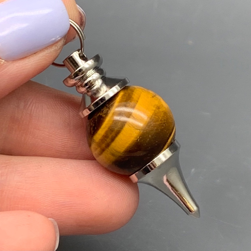 • Подвеска, маятник биолокации, Тигровый глаз, шар гладкий 18 мм, общий размер 40 мм, цена за 1 шт.