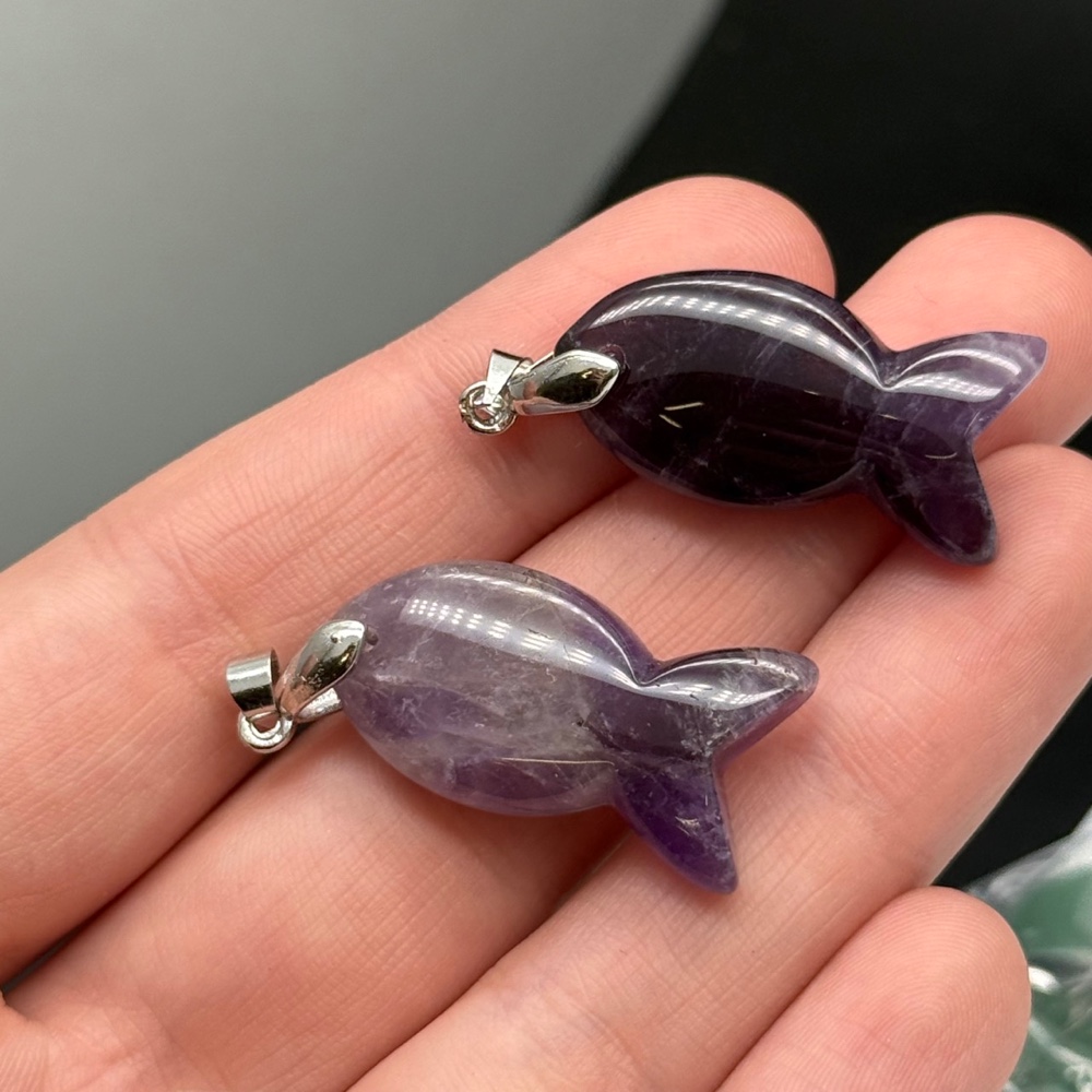 • Подвеска, Рыбка, аметист, цвет оправы-серебро, размер ~30х15 мм, цена за 1 шт.