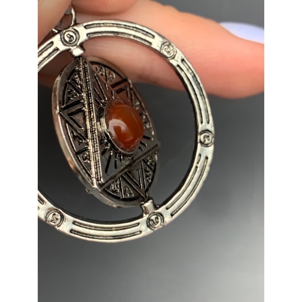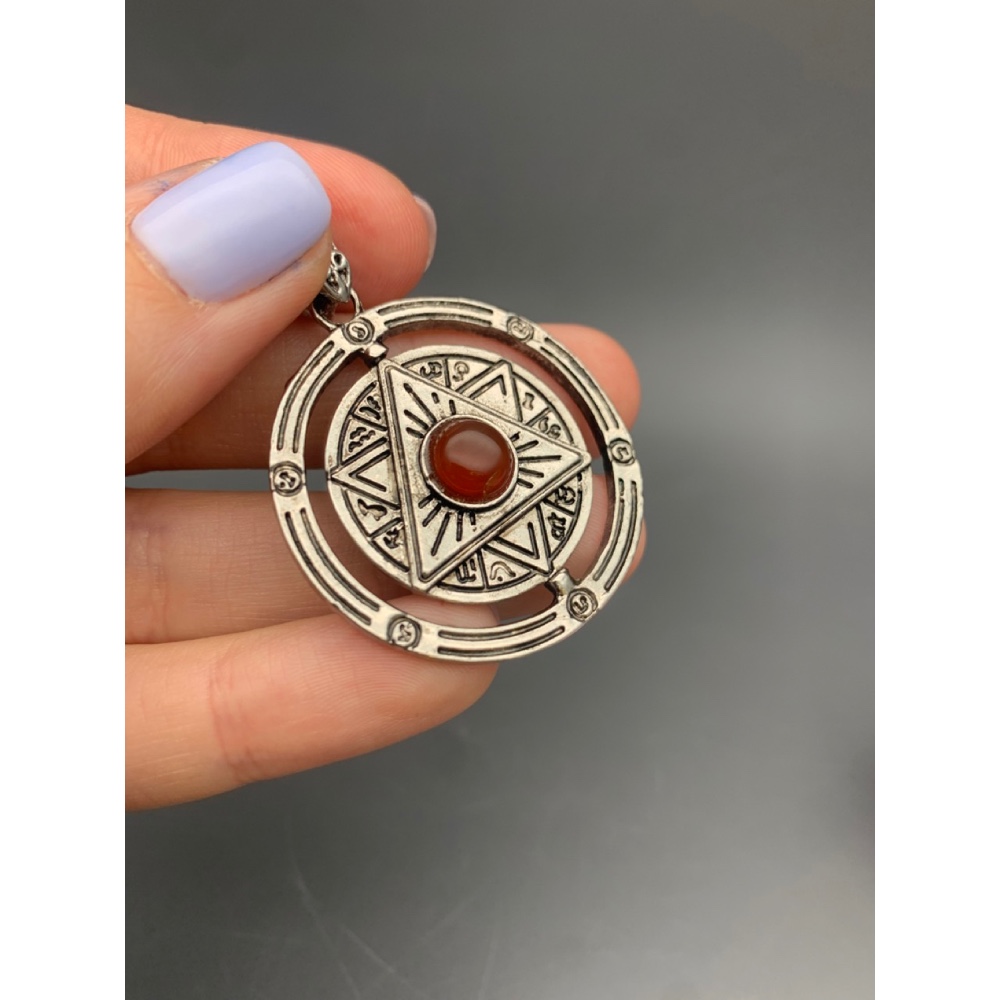 Амулет, Печать Соломона, материал - медный сплав, внутренний круг (диаметр 27 мм) крутится вокруг своей оси, в центре- бусина из натурального камня размером 8 мм.