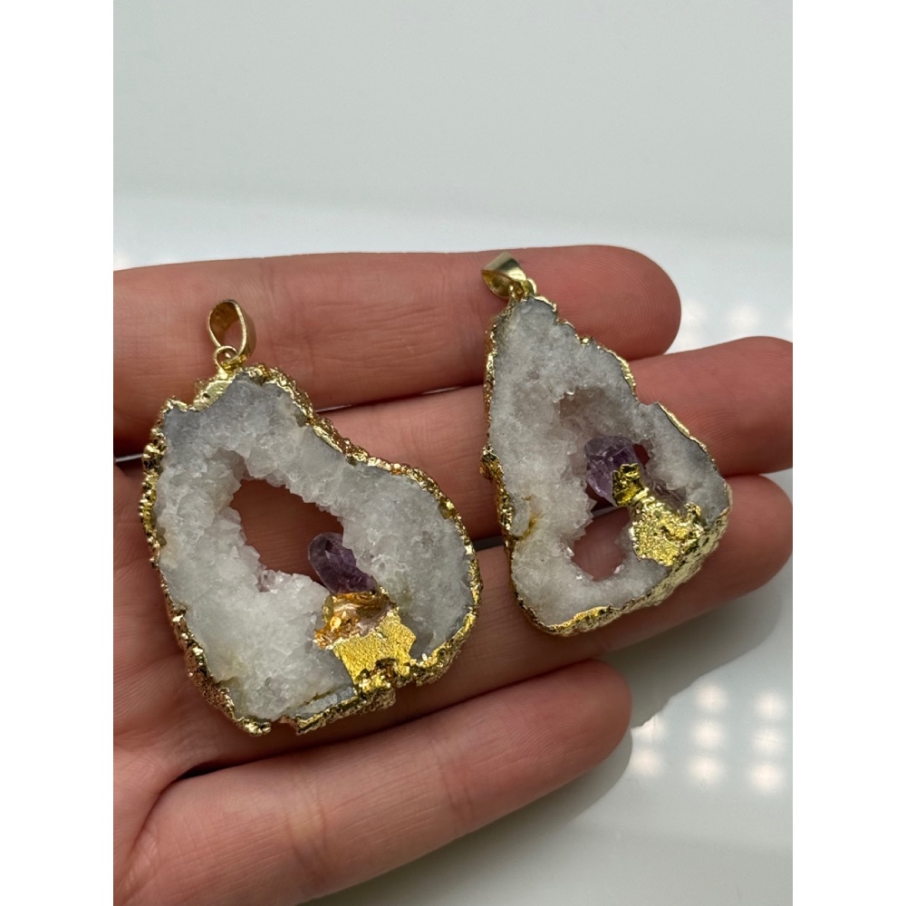 Теги: Подвеска, Срез агата, с кристаллом аметиста, в оправе, цвет- золото, размер ~40-42 мм, цена за 1 шт., 21508, Подвески, Кулоны