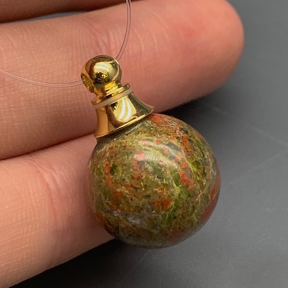 • Подвеска, Унакит, кулон-флакон для духов и масел, шар гладкий 16 мм, крепление - цвет золото, цена за 1 шт.