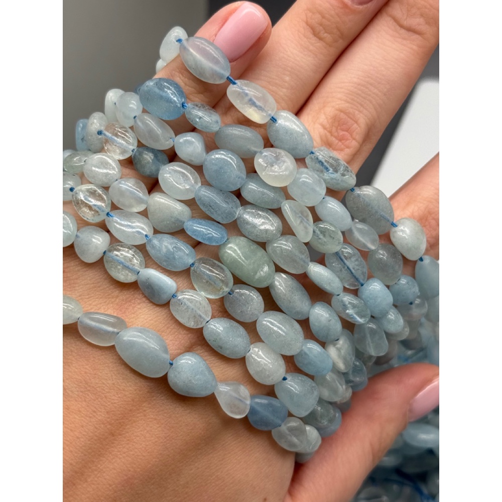 Теги: Каменные бусины, Аквамарин, голубой берилл, фриформы, размер ~11х8 мм, длина нити 38 см, 21931, Фриформы Свободные формы