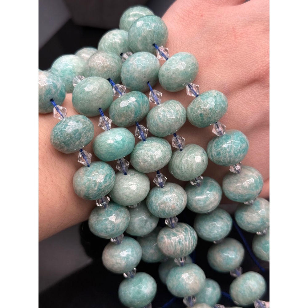 Каменные бусины, Амазонит, люкс, огранка, рондель 18х13 мм, длина нити 18 см