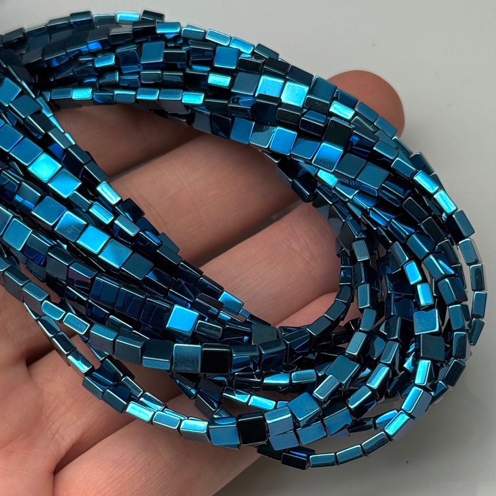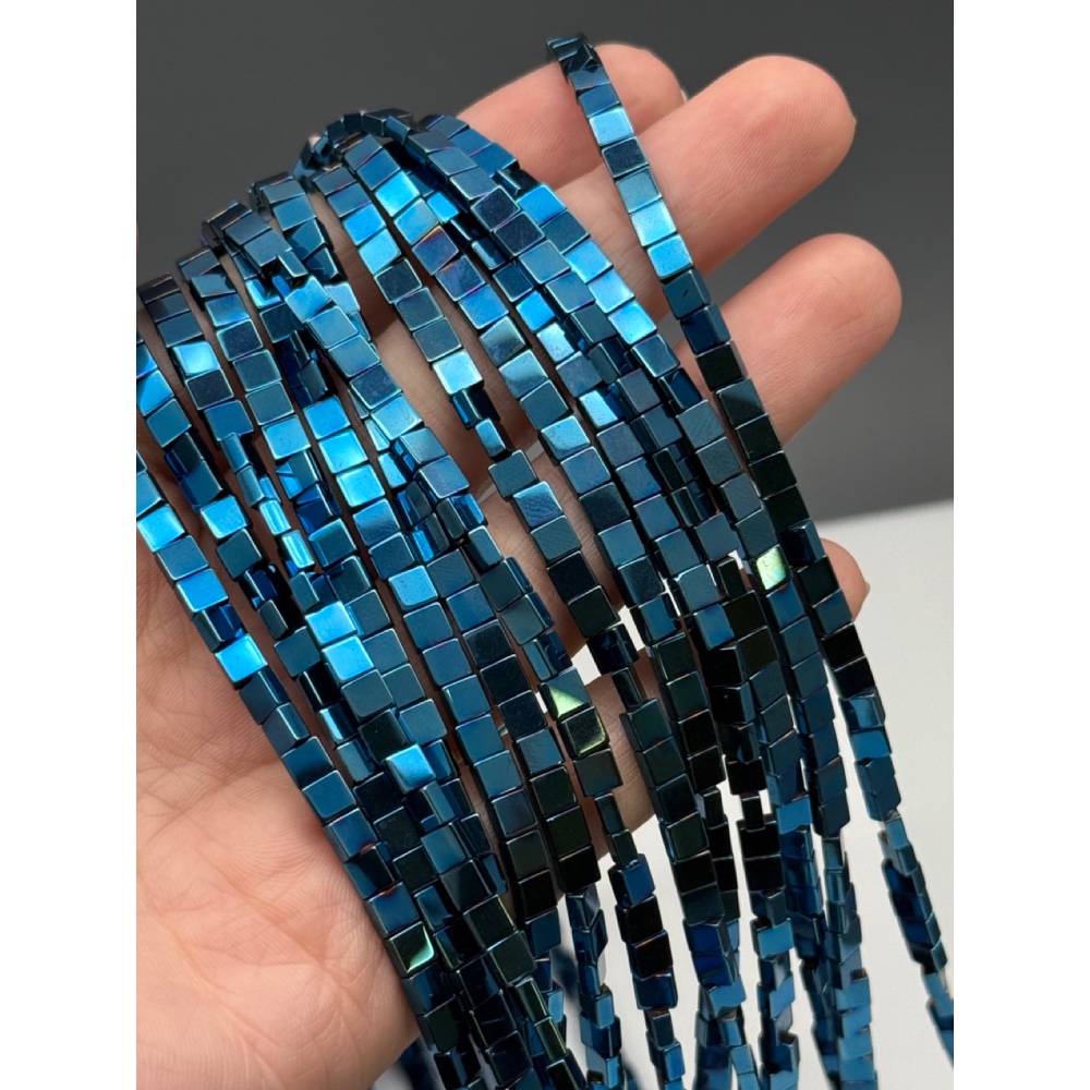 Каменные бусины, Гематит синтетический, плоский квадрат, цвет синий, размер 4х4х2 мм, нить 38 см