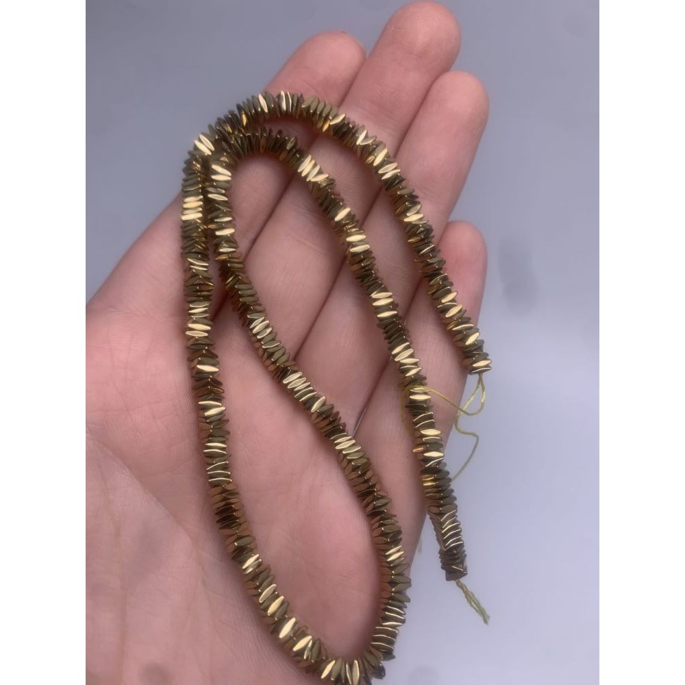 Теги: Каменные бусины, Гематит синтетический, золото, квадратные вставки, размер 4х1 мм, длина нити 38 см, 16931, Нестандартные формы