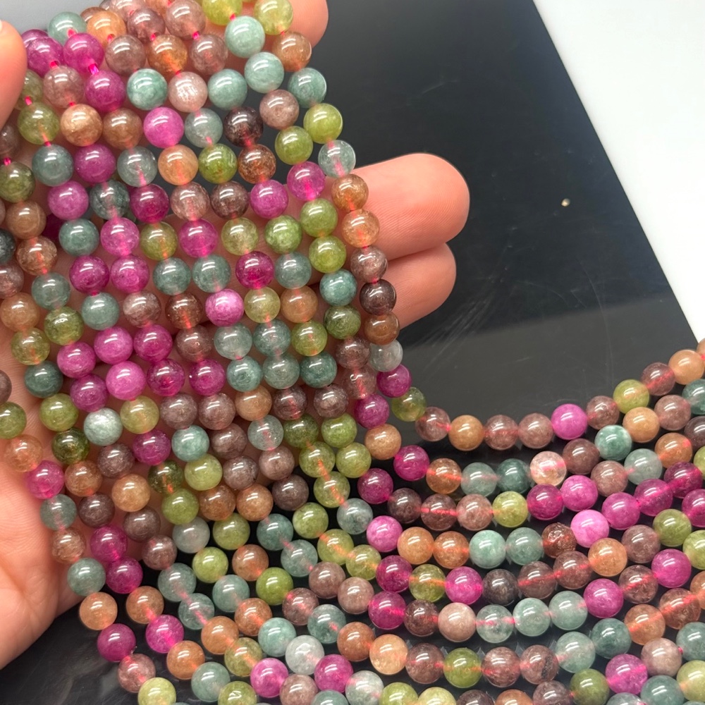 Теги: Каменные бусины, Халцедон, микс цветов, тонированный, шарик гладкий, 6 мм, длина нити 38 см, 21896, Бусины гладкие