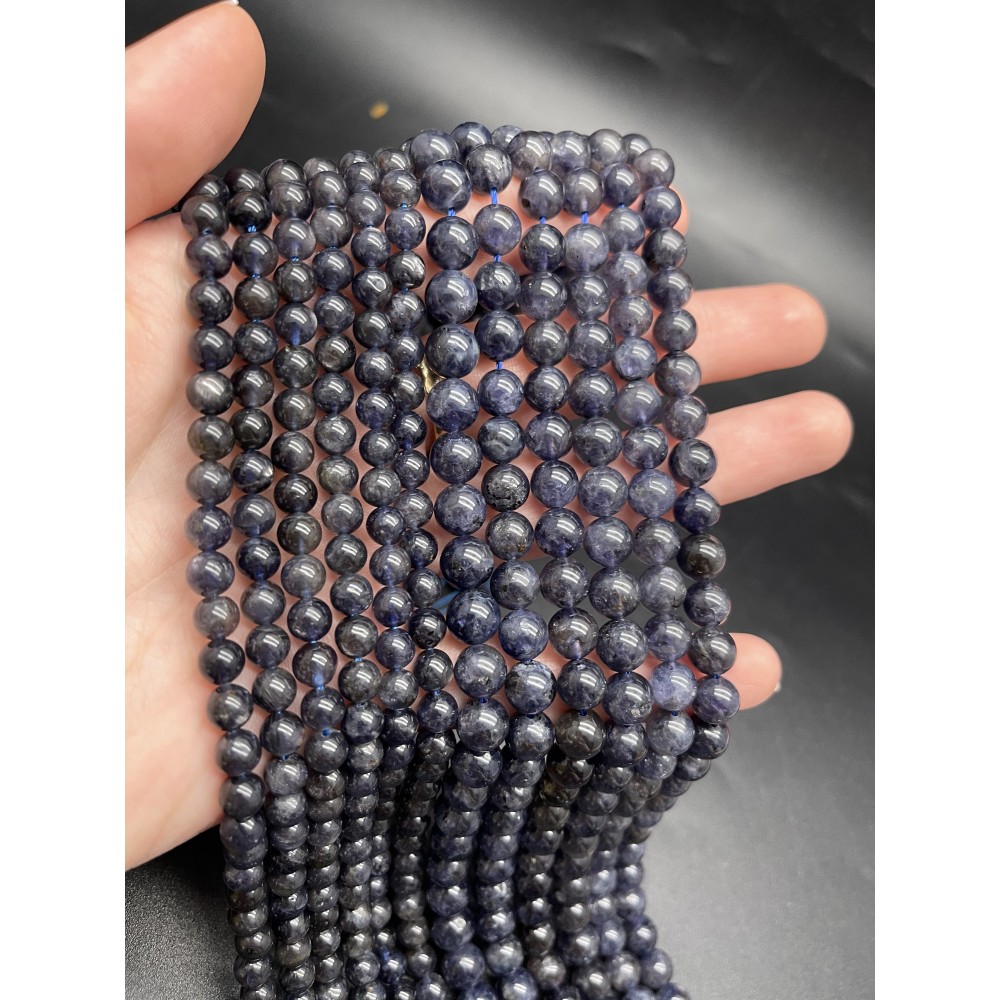Каменные бусины, Иолит (Водяной Сапфир), шарик гладкий, 4 мм, длина нити 38 см