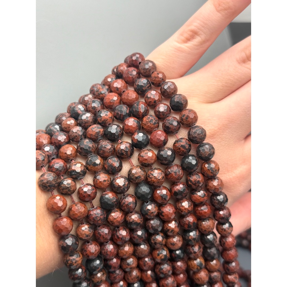 Теги: Каменные бусины, Обсидиан коричневый, шарик огранка, 8 мм, длина нити 37 см, 21885, Бусины в огранке