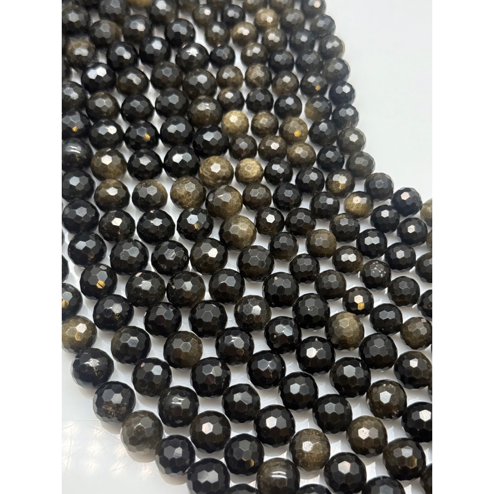 • Каменные бусины, Обсидиан, золотой, шарик огранка, 10 мм, длина нити 37 см