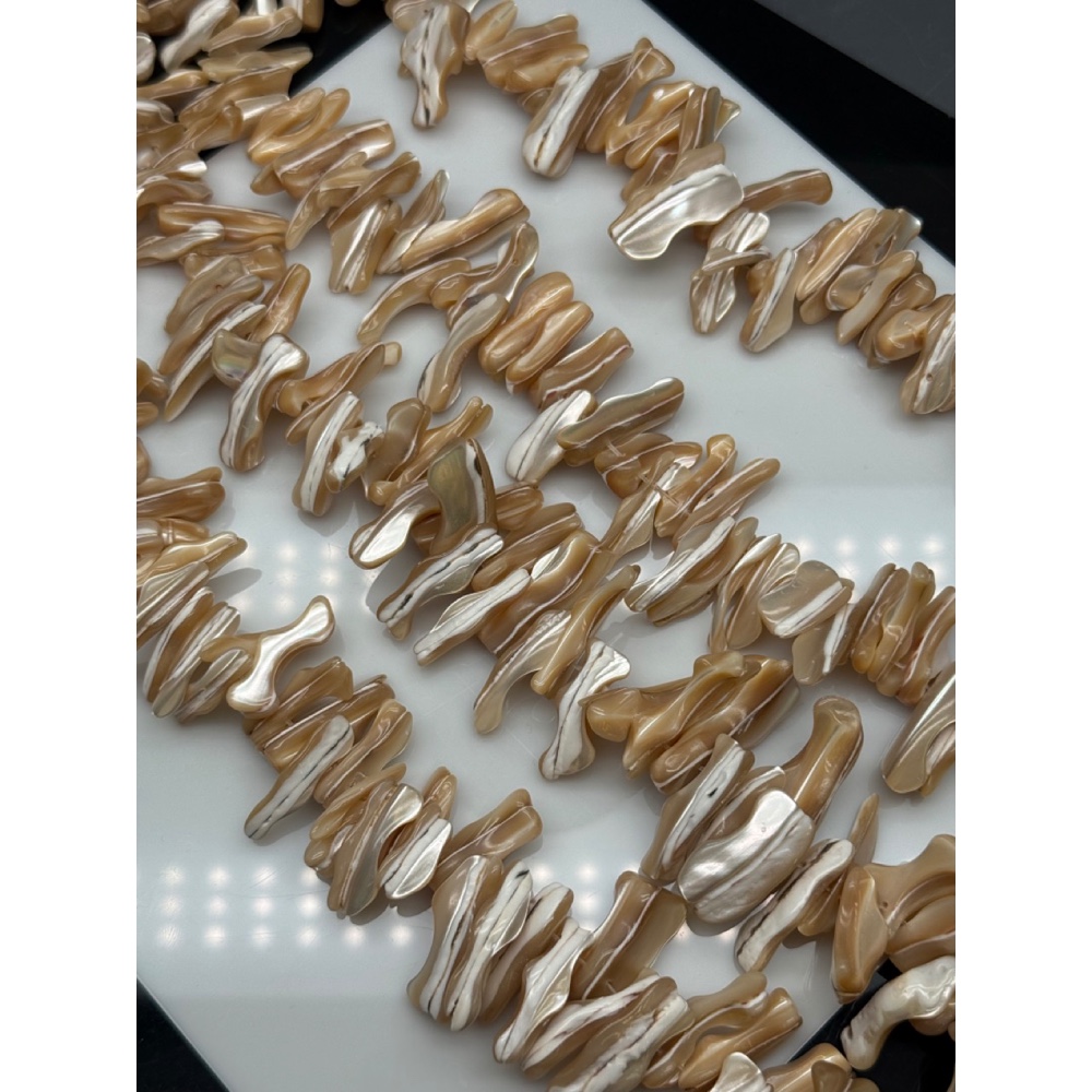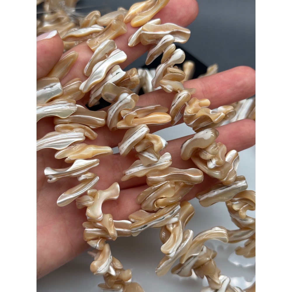 Теги: Каменные бусины, Перламутр, бежевый, фриформы, лепестки, размер ~25х12 мм, длина нити 38 см, 21811, Фриформы Свободные формы