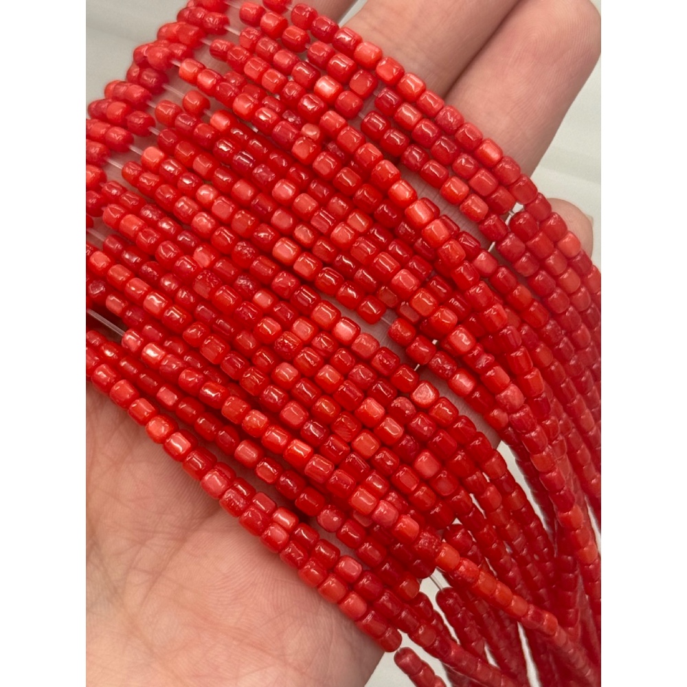 Каменные бусины, Перламутр красный, тонированный, бочонок, 3х3 мм, длина нити 38 см