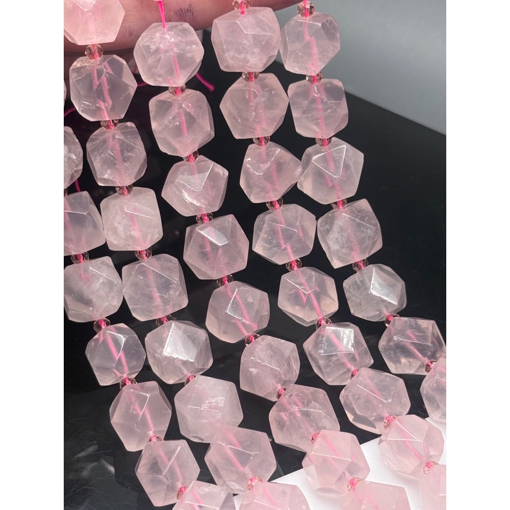 • Каменные бусины, Розовый Кварц, фриформы, огранка, ~13х13 мм, длина нити 40 см