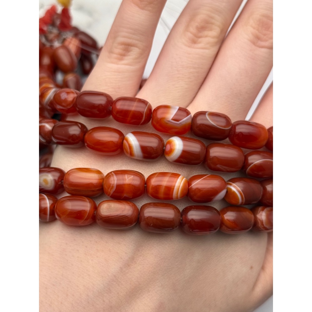 • Каменные бусины, Сардоникс, бочонок, 14х9 мм, длина нити 38 см