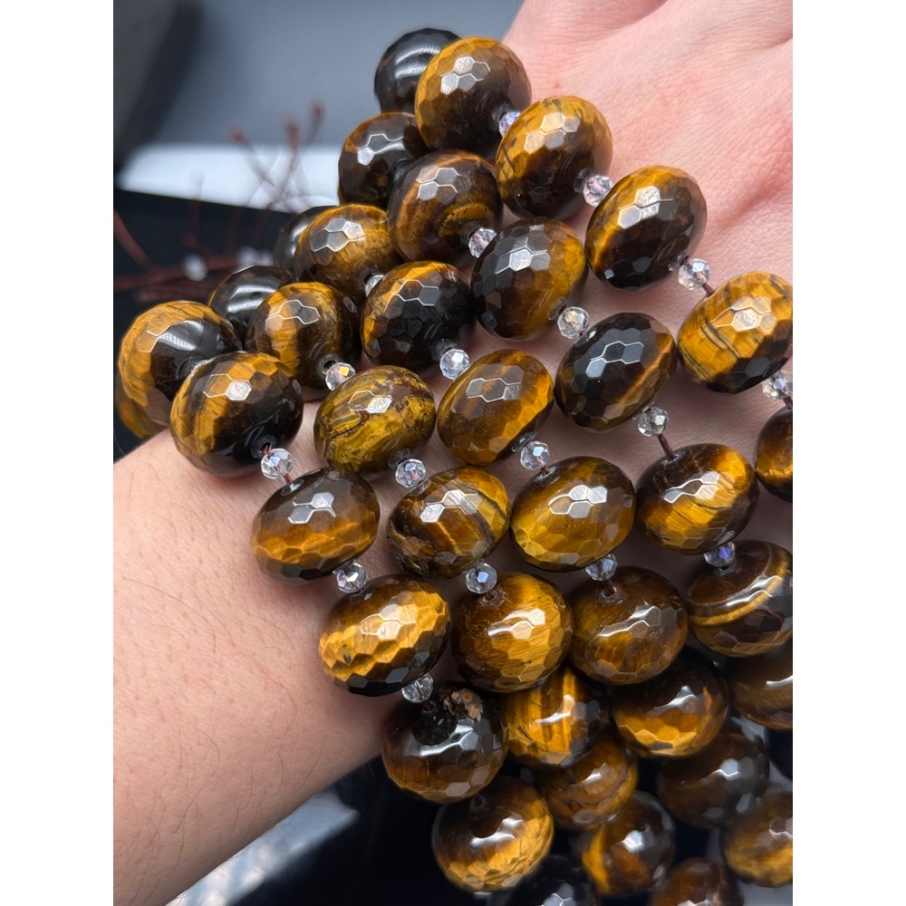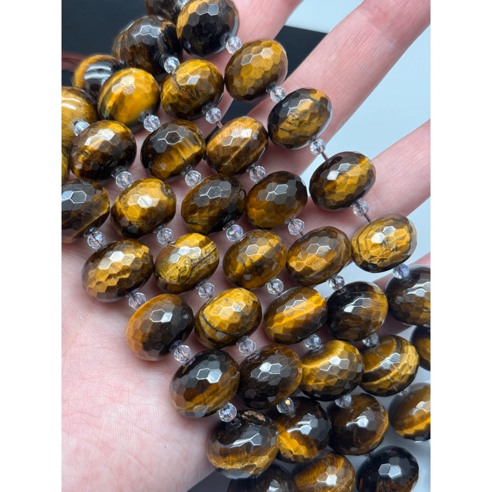 Каменные бусины, Тигровый глаз, люкс, огранка, рондель 18х13 мм, длина нити 36 см