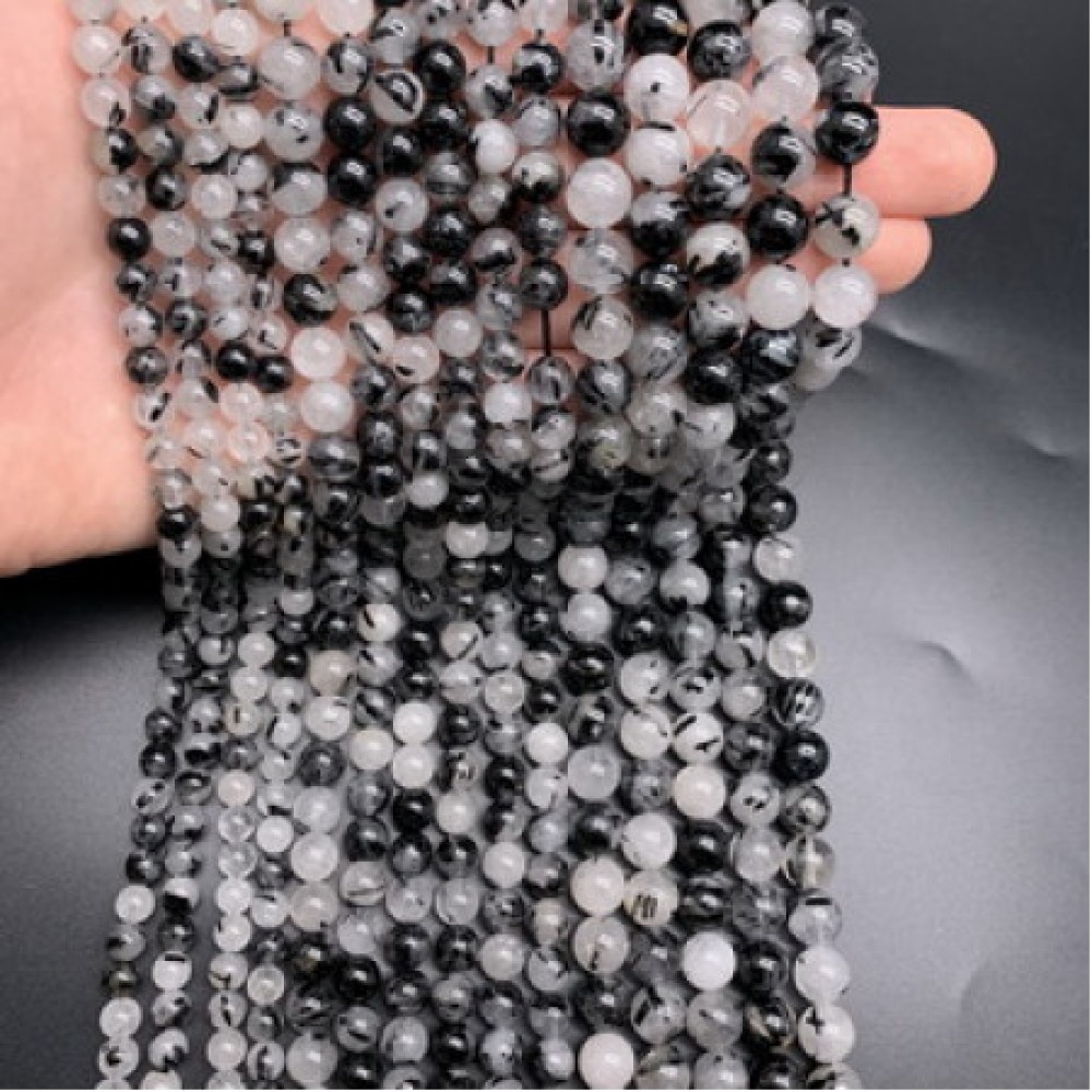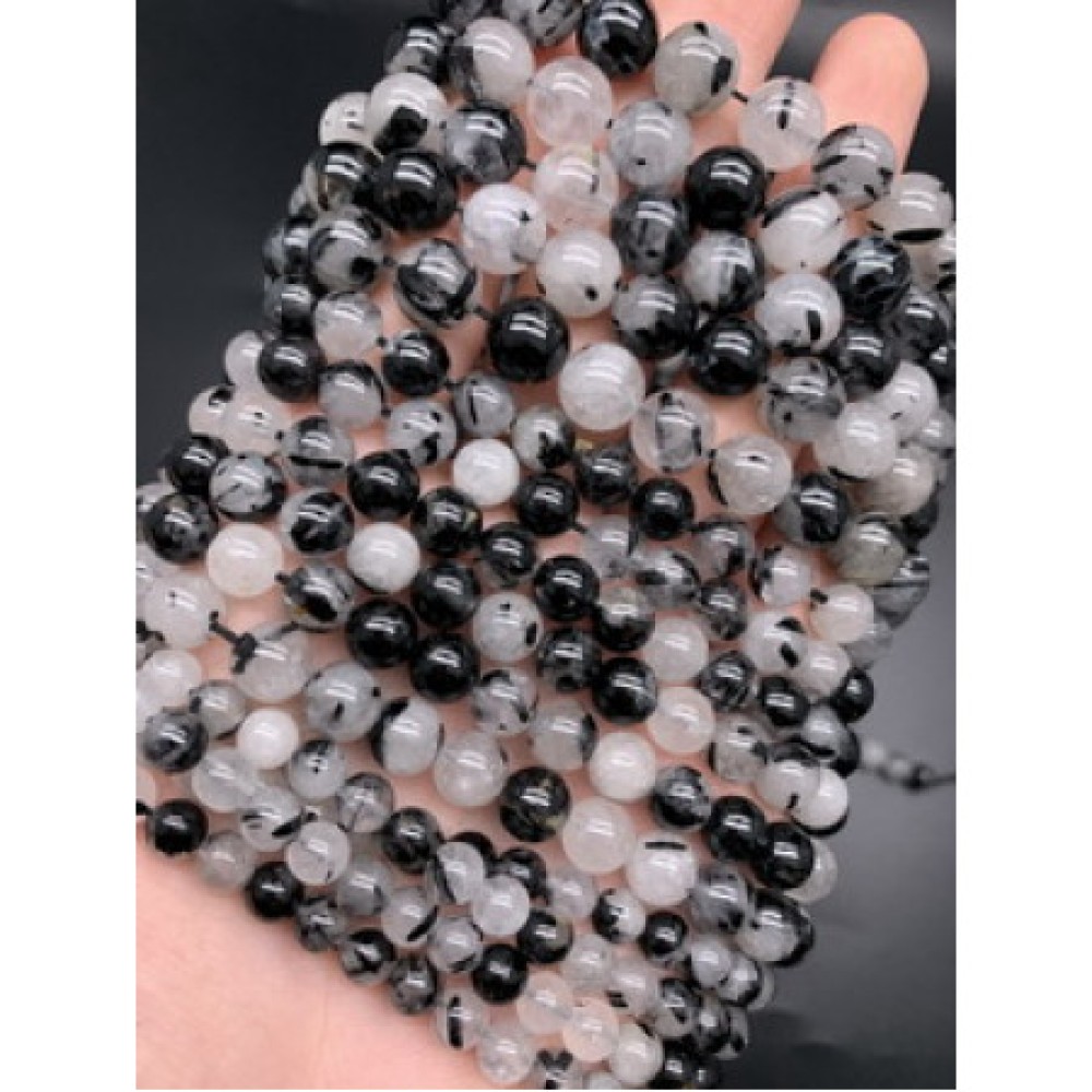 Каменные бусины, Турмалиновый кварц, шарик гладкий, 6 мм, длина нити 38 см