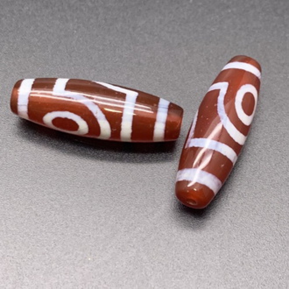 Бусина Дзи "118" из сердолика, 2 глаза Дракона, размер 30х10 мм, цена за 1 шт