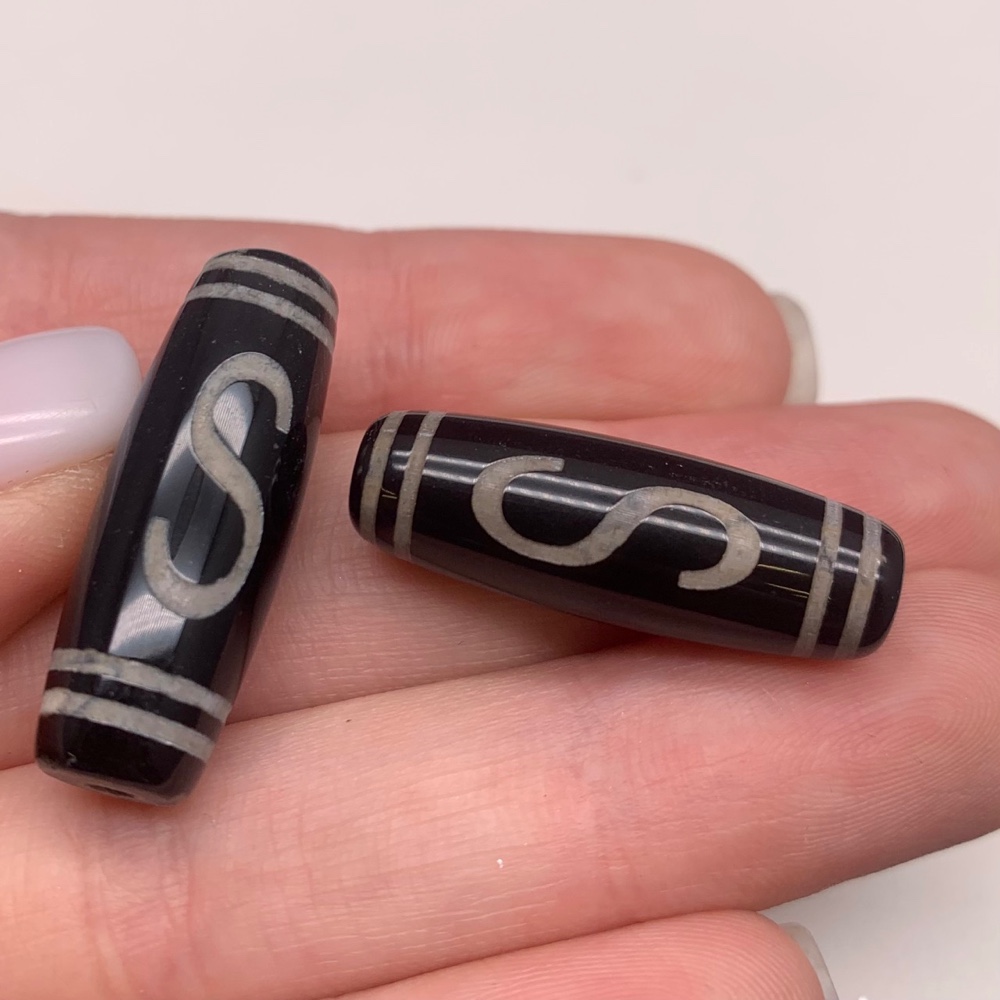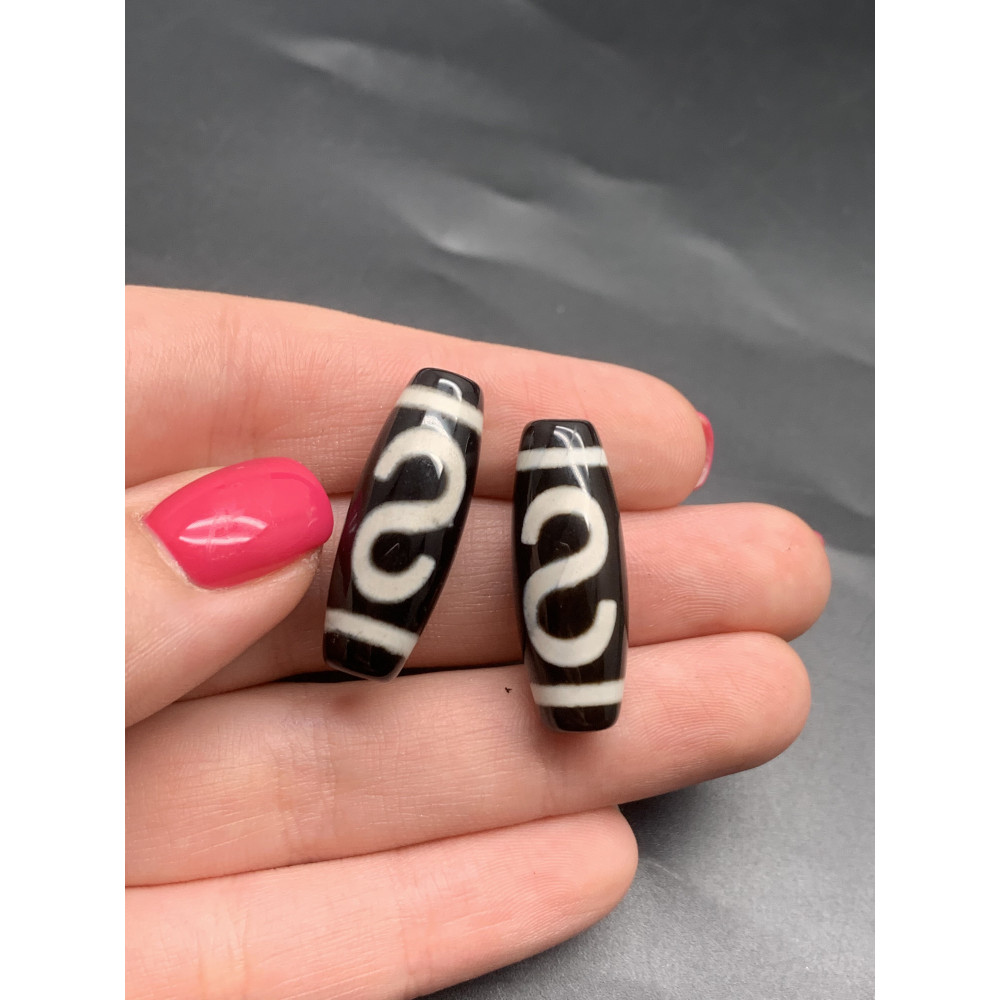 Бусина Дзи "14" из агата, Денежный крючок, размер 30х10 мм, цена за 1 шт