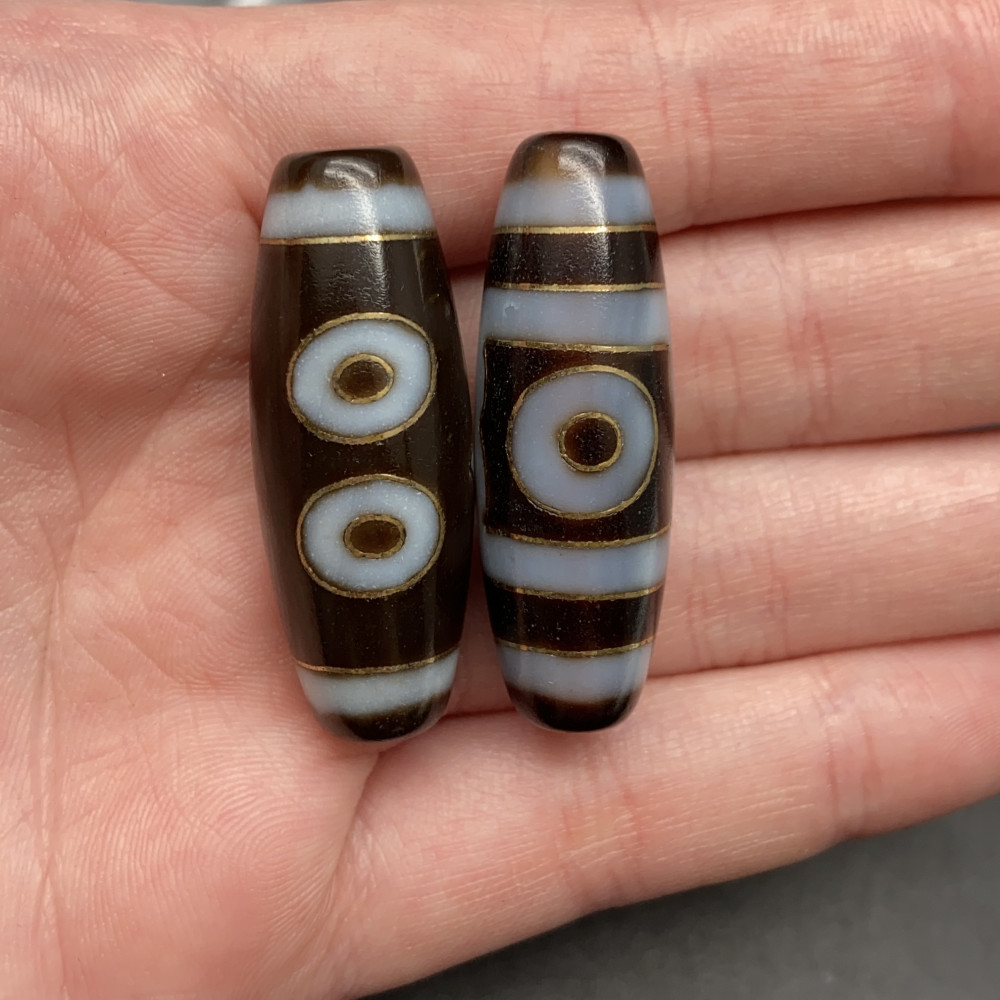 Бусина Дзи "285", 3 глаза, из агата, с инкрустацией золота, 38х12 мм, цена за 1 шт