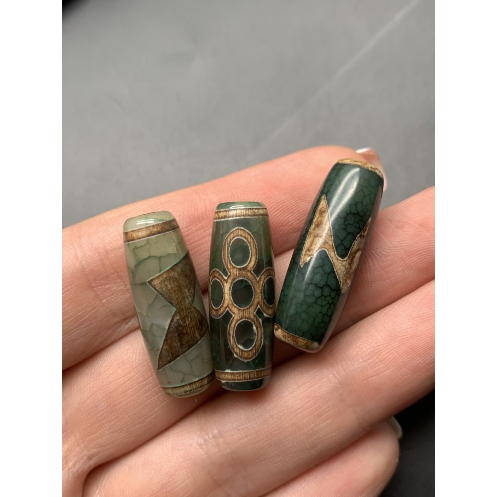 Теги: Бусина Дзи 336, Гаруда молния, Агат, зелёный, тонированный, состаренный, кракле, 30х10 мм, цена за 1 бусину, 14864, Бусины Дзи