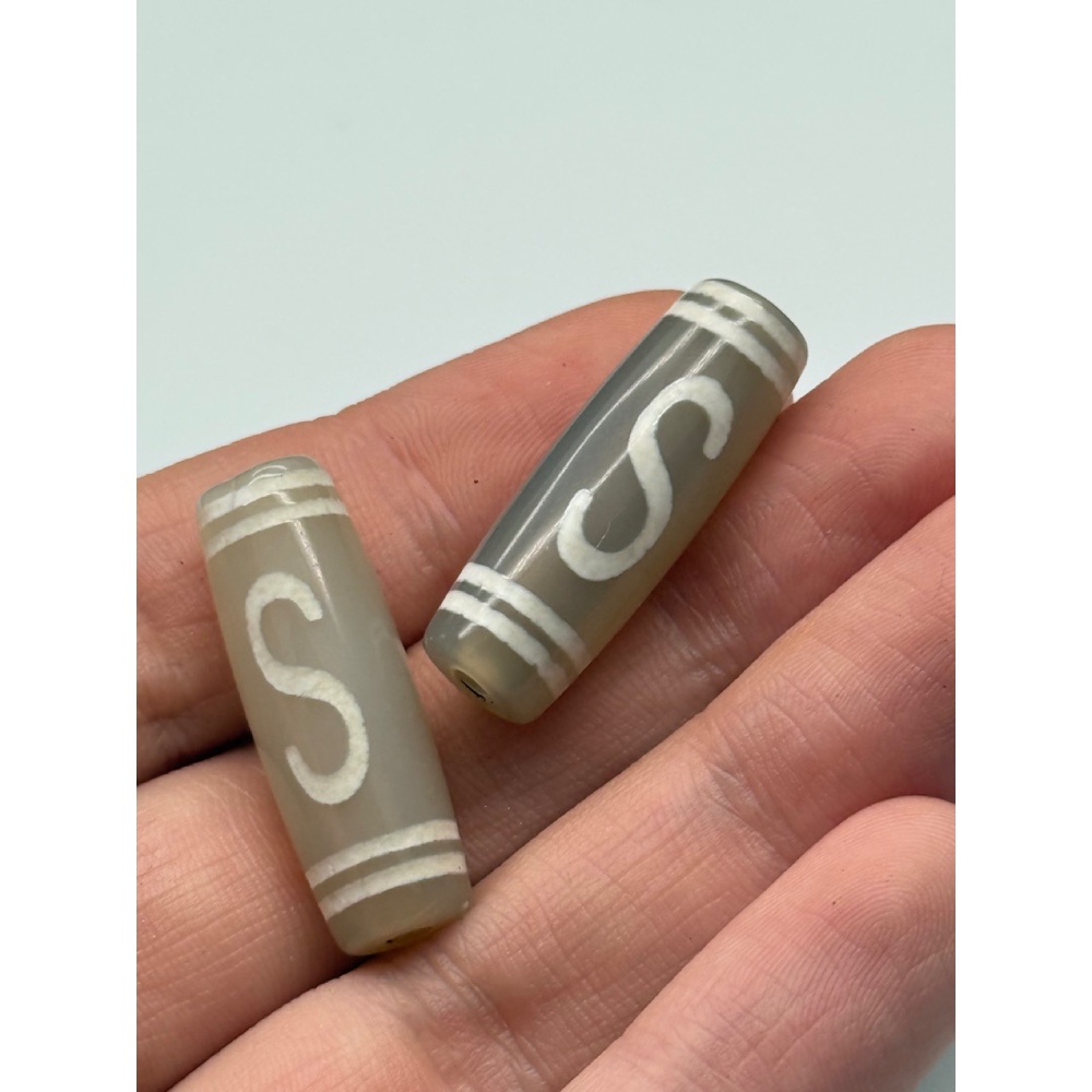 • Бусина Дзи "50", Денежный крючок, агат, халцедон светлый, размер 30х10 мм, цена за 1 шт