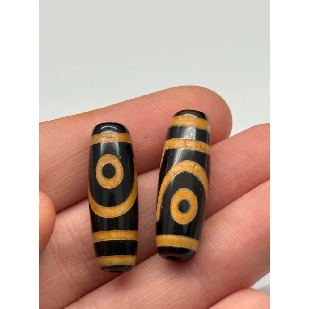 Бусина Дзи "568", агат, 2 глаза дракона, размер 30х10 мм, цена за 1 шт