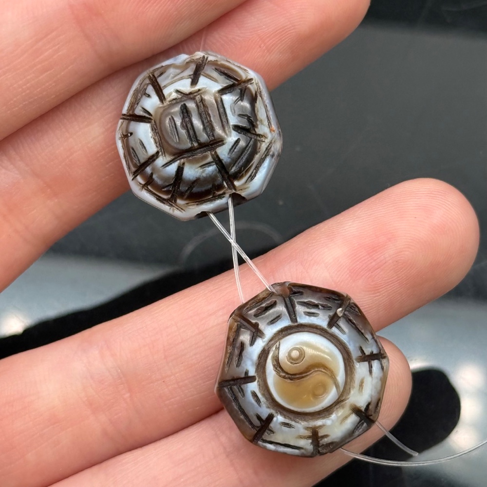 Бусина Дзи "603", агат, Инь-Янь, резная, люкс, размер ~20х13 мм, цена за 1 шт