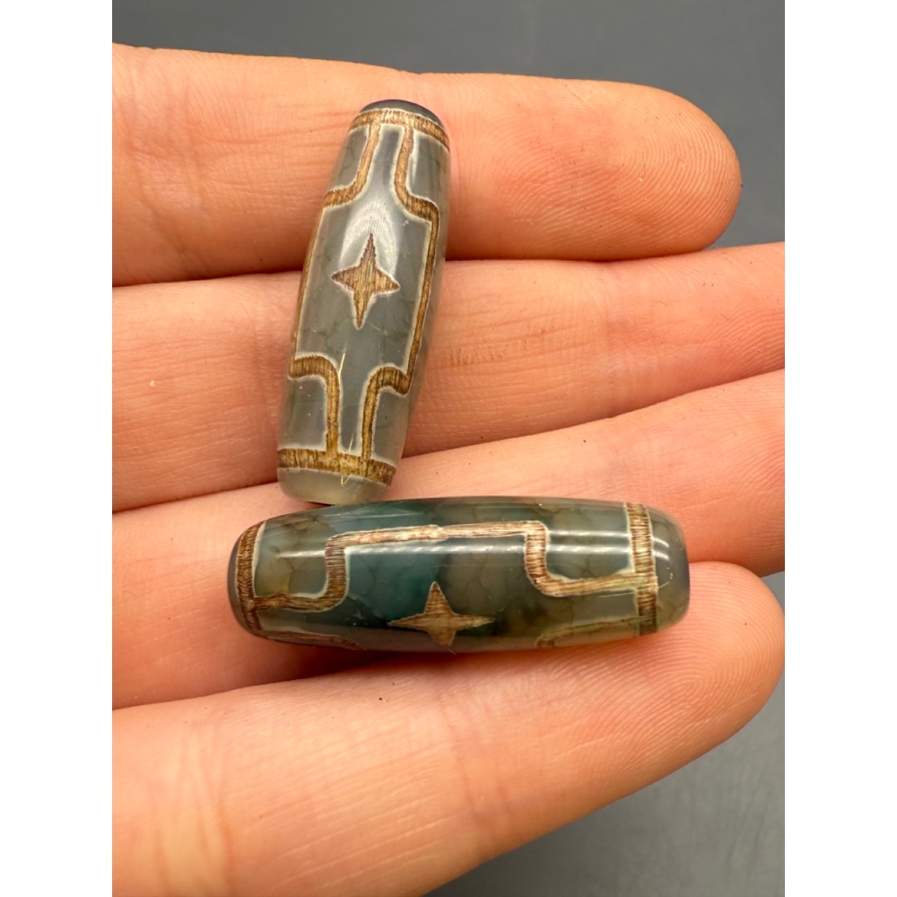 Бусина Дзи "62", Пинан, Васту, (2 бриллианта, 2 звезды), Агат, зелёный, тонированный, состаренный, кракле, 29х10 мм, цена за 1 шт. 0 130 ₽