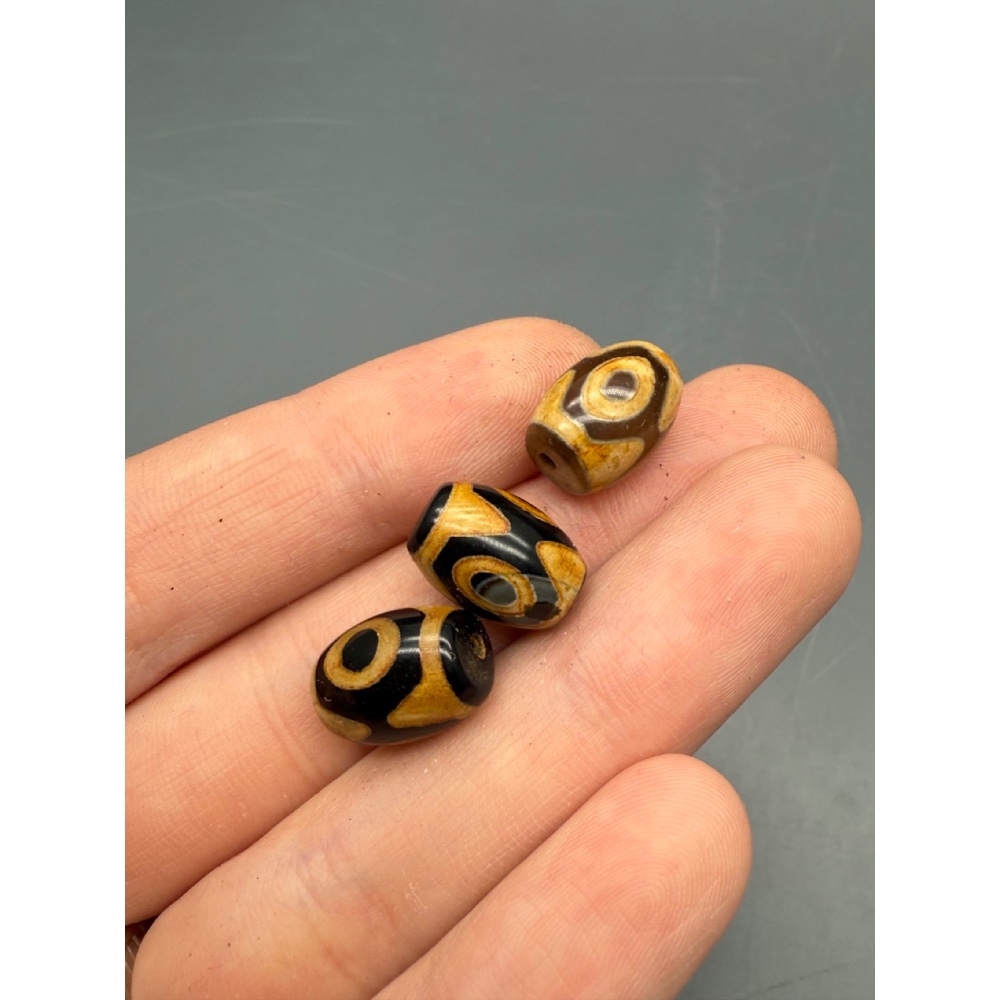 • Бусина Дзи, "834", 3 глаза, Агат, состаренный, кракле, размер 14х10 мм, цена за 1 бусину