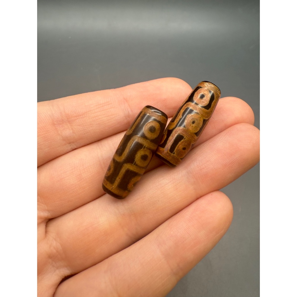 Бусина Дзи "328", 9 глаз, Агат, тонированный, глянцевый, состаренный, 29х11 мм, цена за 1 бусину