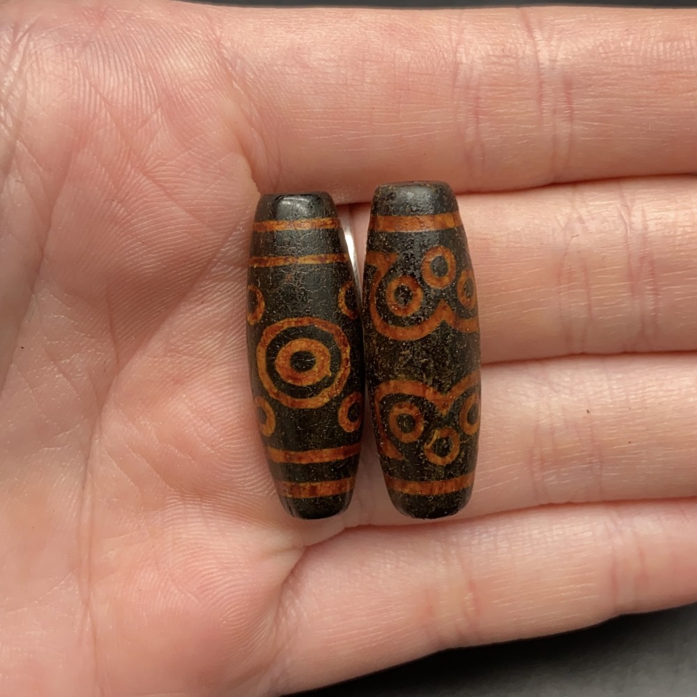 Бусина Дзи "379", Агат, 11 глаз, состаренная, 30х10 мм, цена за 1 шт