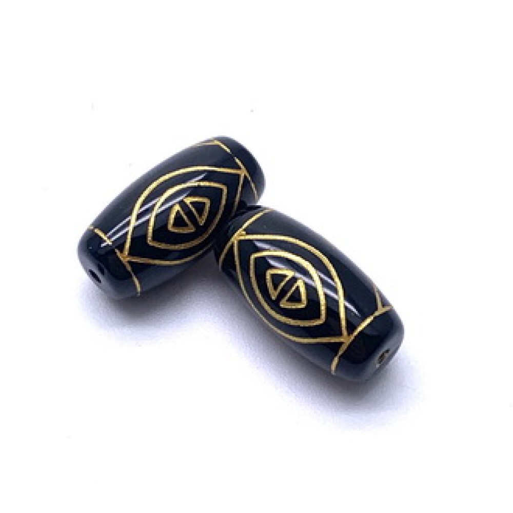 Бусина Дзи "589", агат, 2 Глаза Феникса, размер 18х10 мм, цена за 1 шт