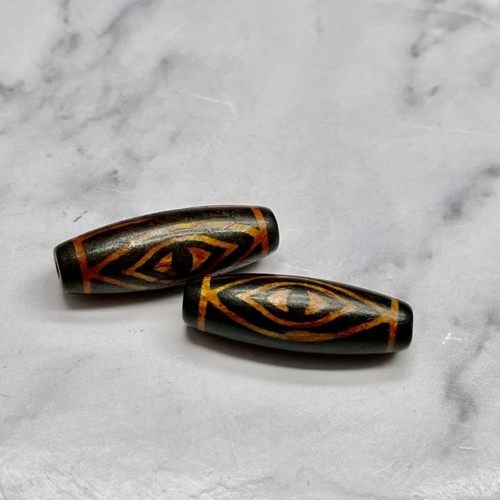 Бусина Дзи "392", Агат, 2 глаза Феникса, состаренная, 30х10 мм, цена за 1 шт