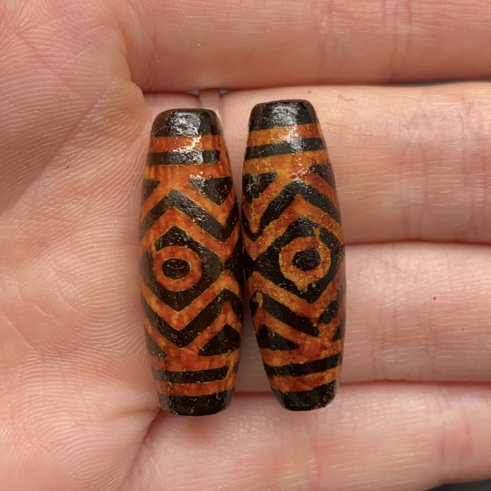 Бусина Дзи "380", Агат, 3 глаза, Клык, состаренная, 30х10 мм, цена за 1 шт 0 140 ₽