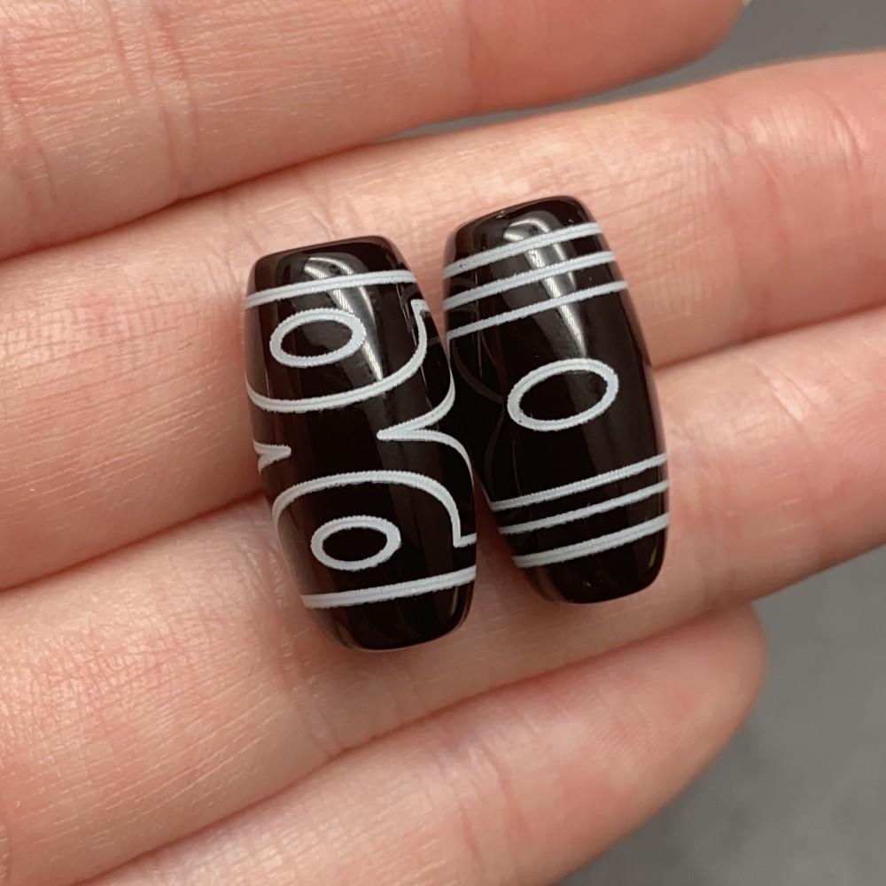 Бусина Дзи "174", агат, 3 глаза, размер 18х10 мм, цена за 1 шт