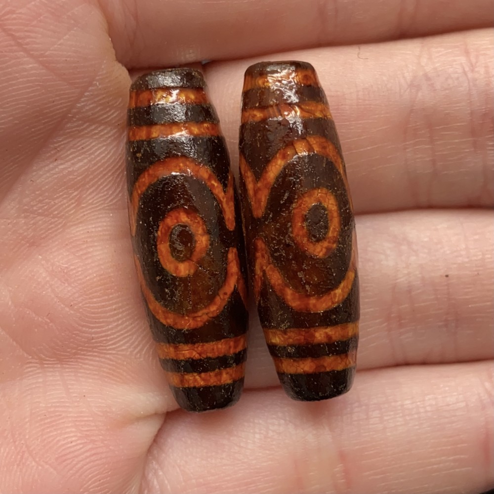 Бусина Дзи "378", Агат, 3 глаза, состаренная, 30х10 мм, цена за 1 шт