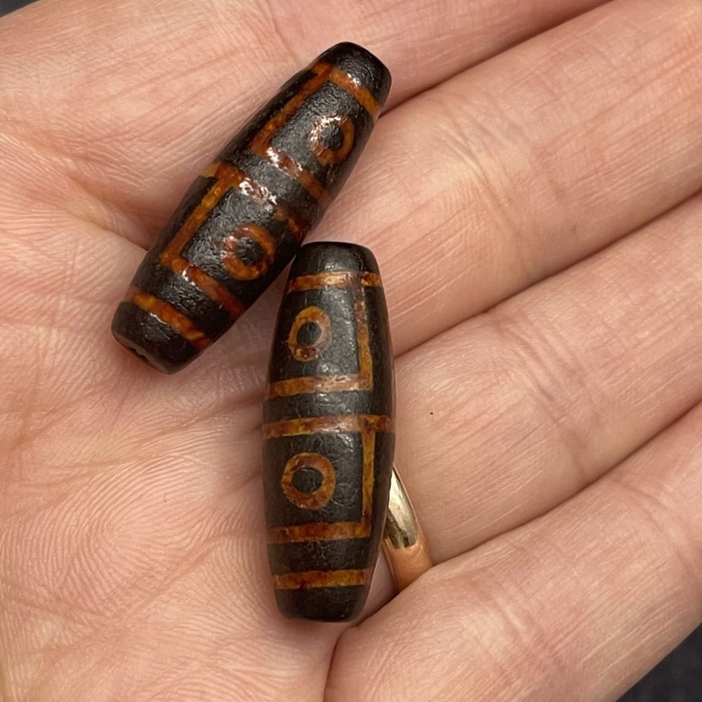 Бусина Дзи "388", Агат, 4 глаза, состаренная, 30х10 мм, цена за 1 шт