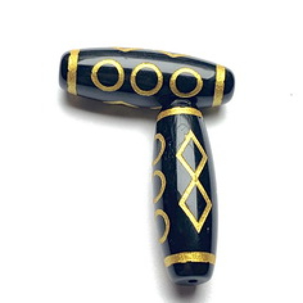 Бусина Дзи "260", агат, 5 глаз - 4 бриллианта, размер 30х10 мм, цена за 1 шт