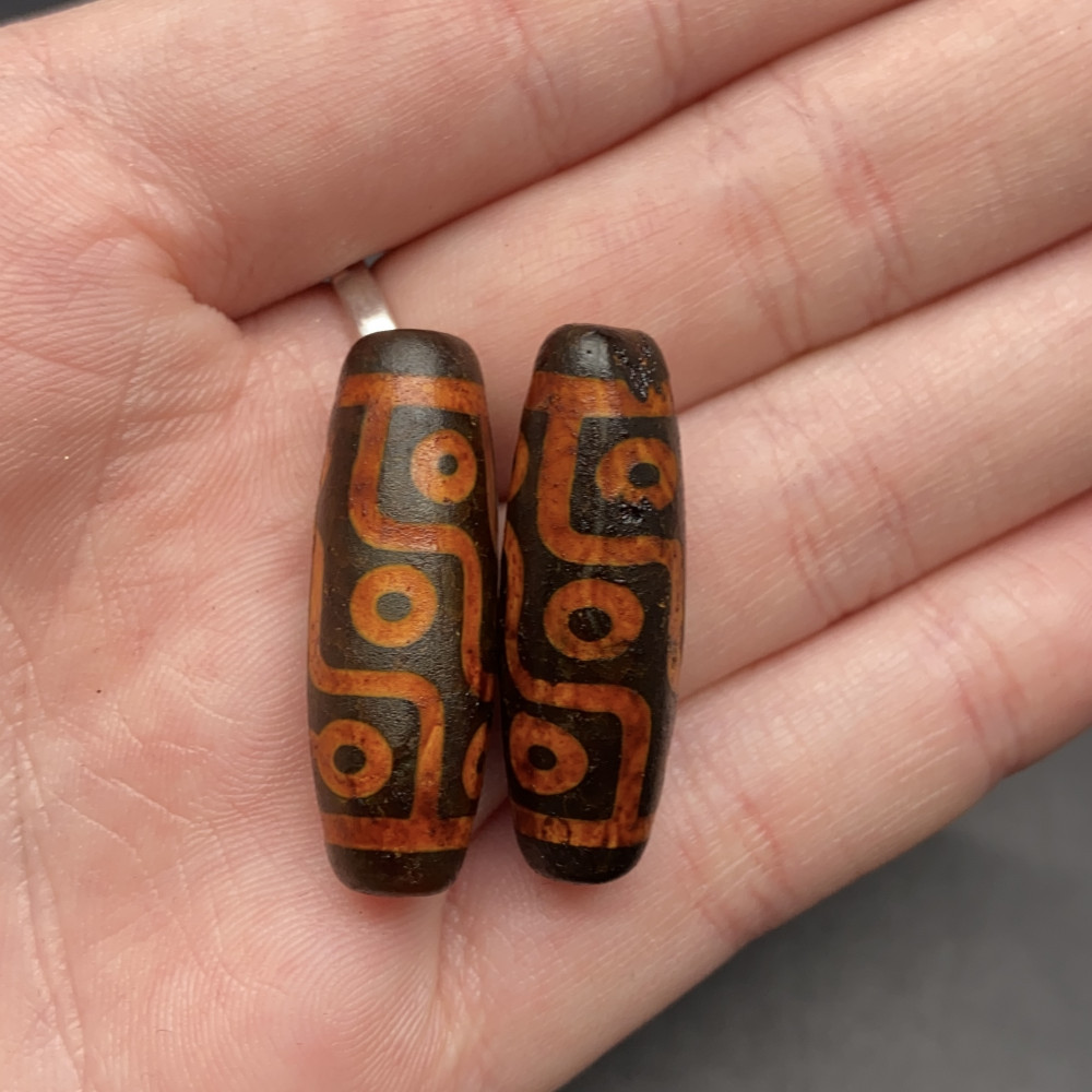 Бусина Дзи "351", Агат, 9 глаз, состаренная, 30х10 мм, цена за 1 шт