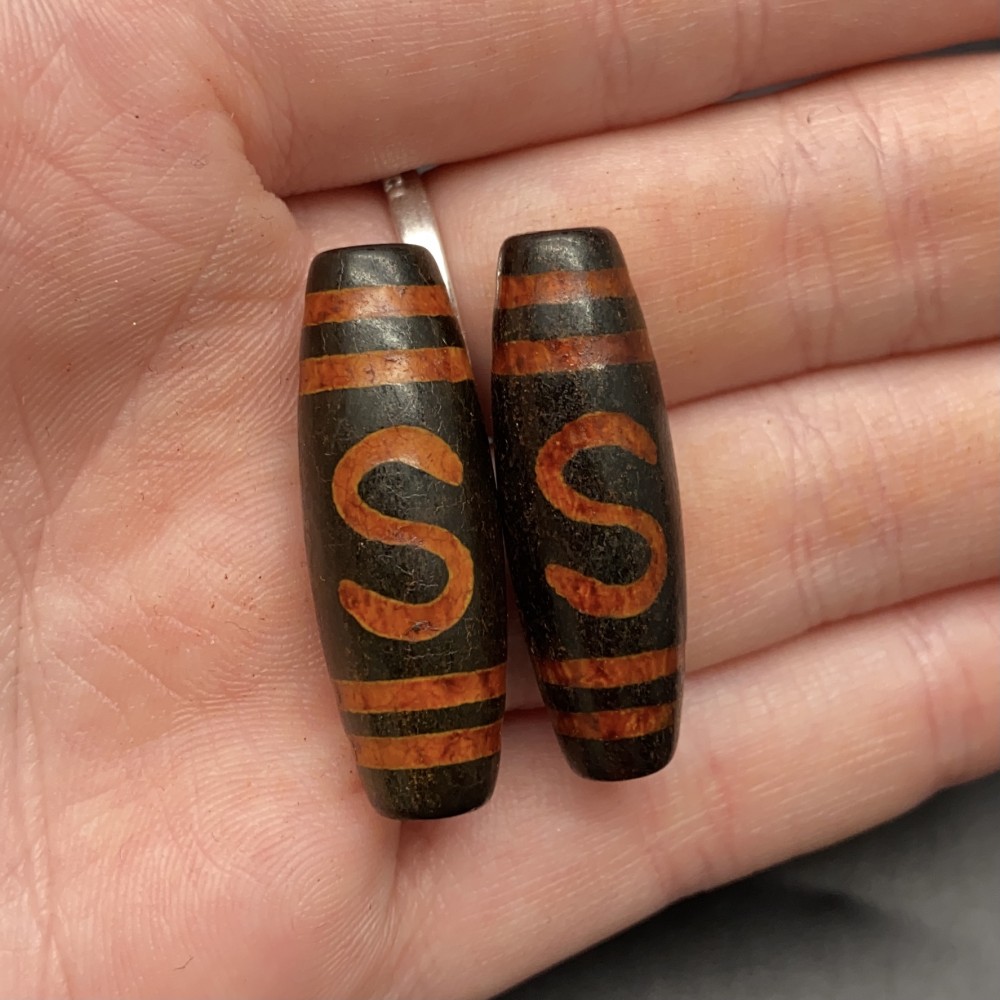 Бусина Дзи "357", Агат, Денежный крючок, состаренная, 30х10 мм, цена за 1 шт 0 140 ₽