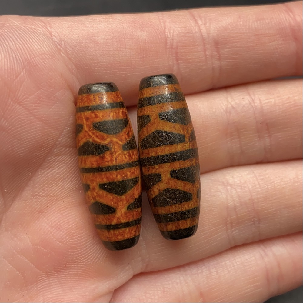 Бусина Дзи "382", Агат, Двойной черепаший панцирь, состаренная, 30х10 мм, цена за 1 шт