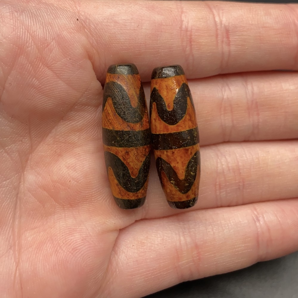 Бусина Дзи "356", Агат, Двойной тигриный клык, состаренная, 30х10 мм, цена за 1 шт