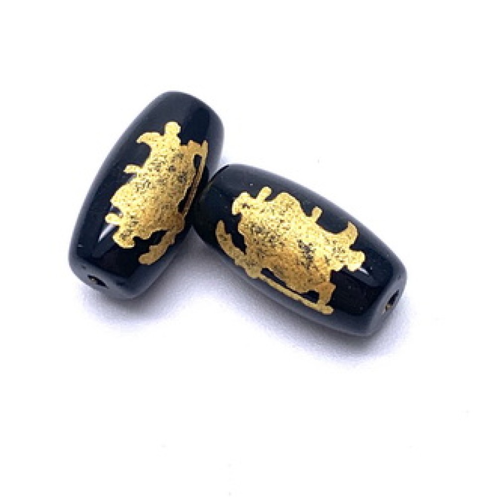 Бусина Дзи "558", агат, Куан-Кунг, Человек с посохом, размер 18х10 мм, цена за 1 шт