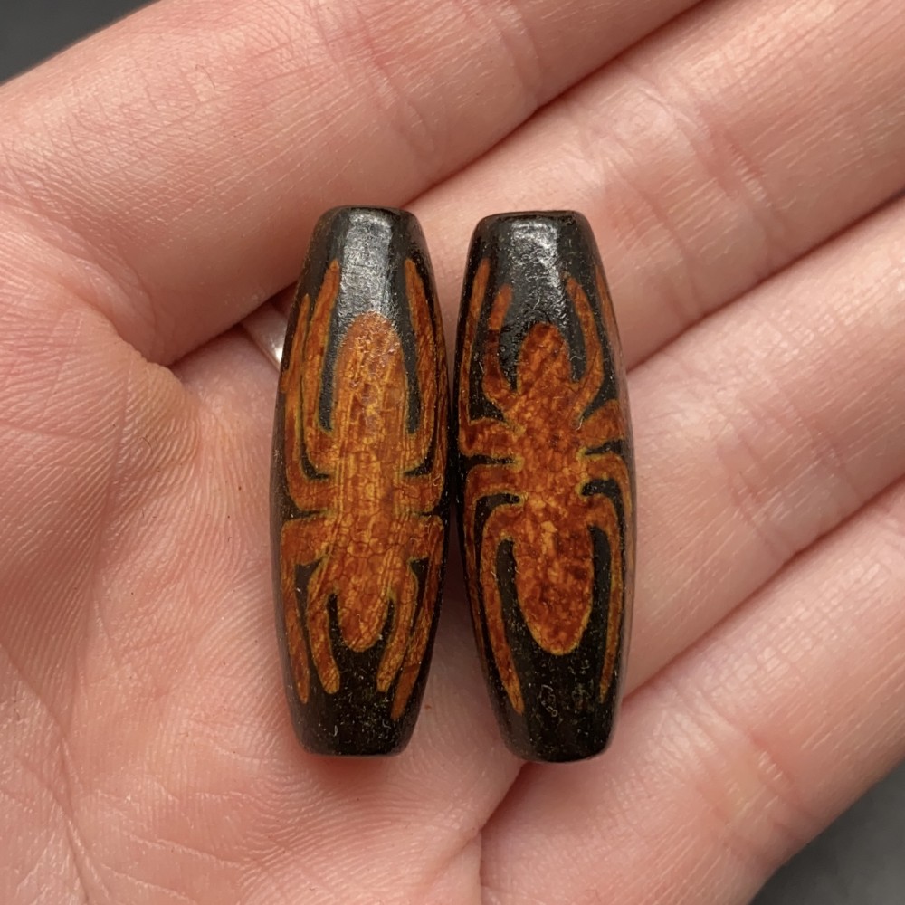 • Бусина Дзи "375", Агат, Паук, состаренная, 30х10 мм, цена за 1 шт