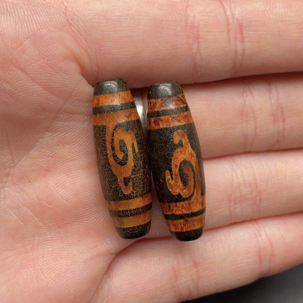 Бусина Дзи "352", Агат, Зелёная тара, состаренная, 30х10 мм, цена за 1 шт