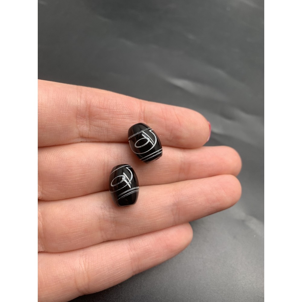 Бусина Дзи "662" из агата, 2 глаза Дракона, размер 12х9 мм, цена за 1 шт