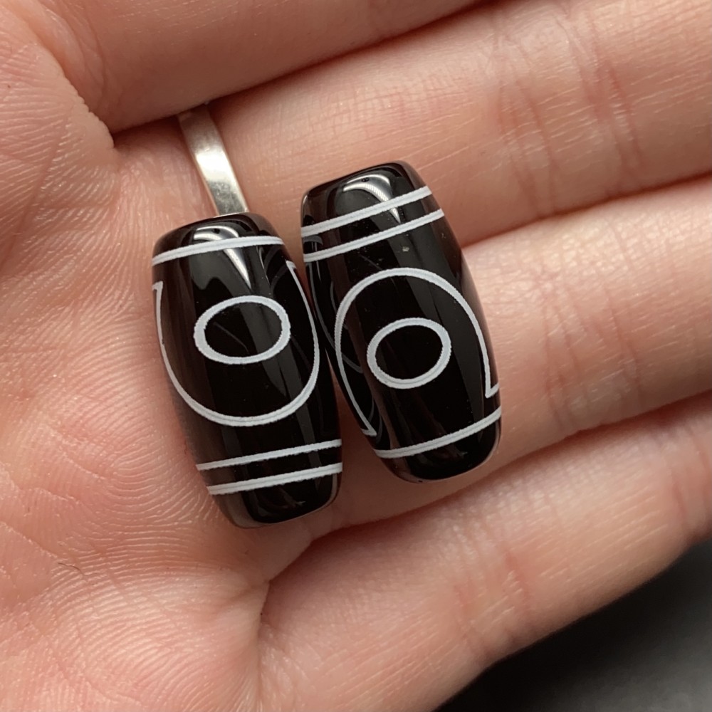 Бусина Дзи "168" из агата, 2 глаза Дракона, размер 18х10 мм, цена за 1 шт