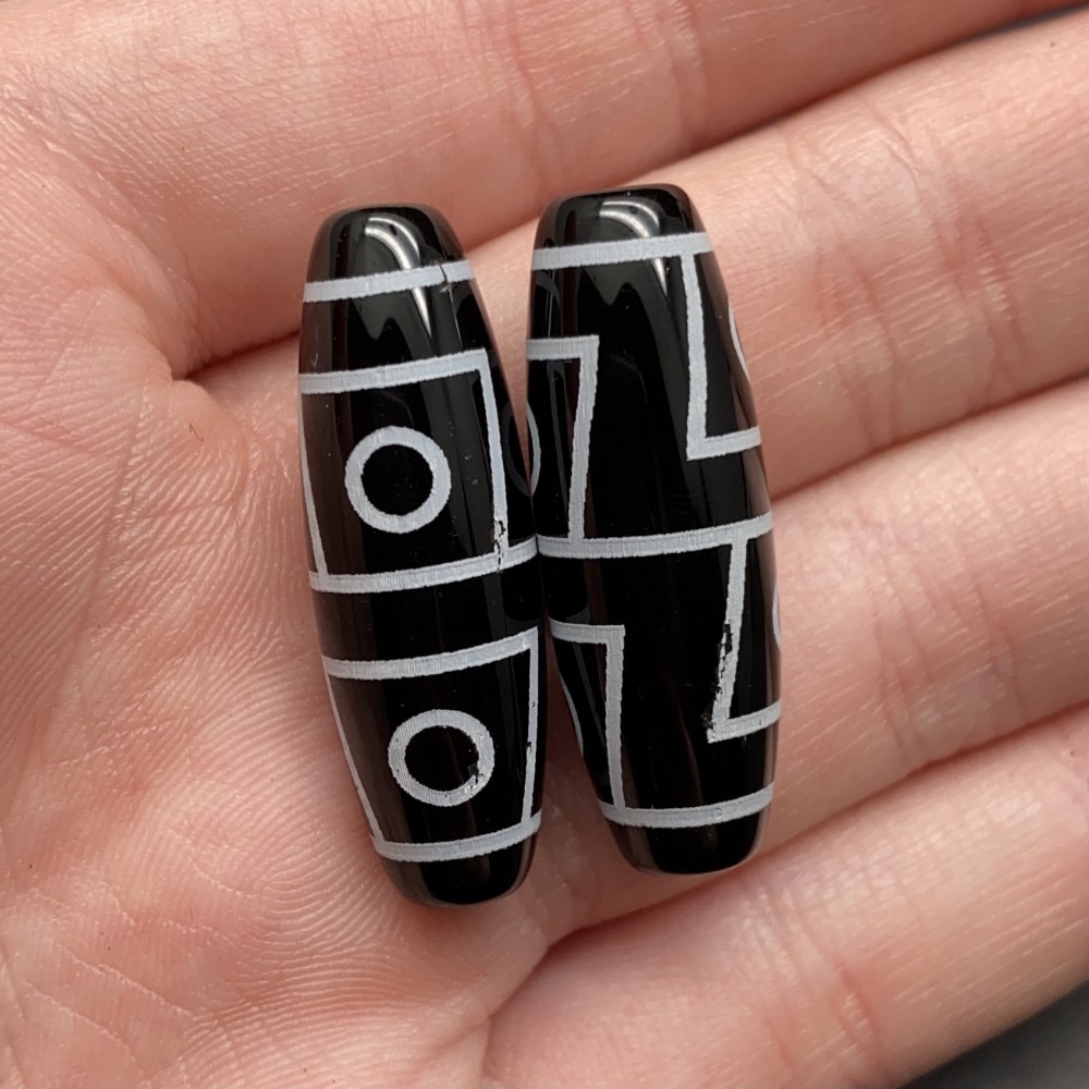 Бусина Дзи "52" из агата, 4 глаза, размер 30х10 мм, цена за 1 шт