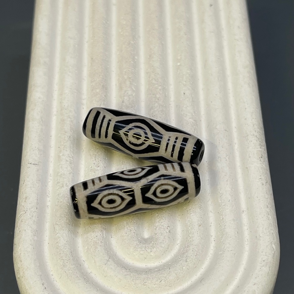 Бусина Дзи "25" из агата, 6 глаз Феникса, размер 30х10 мм, цена за 1 шт