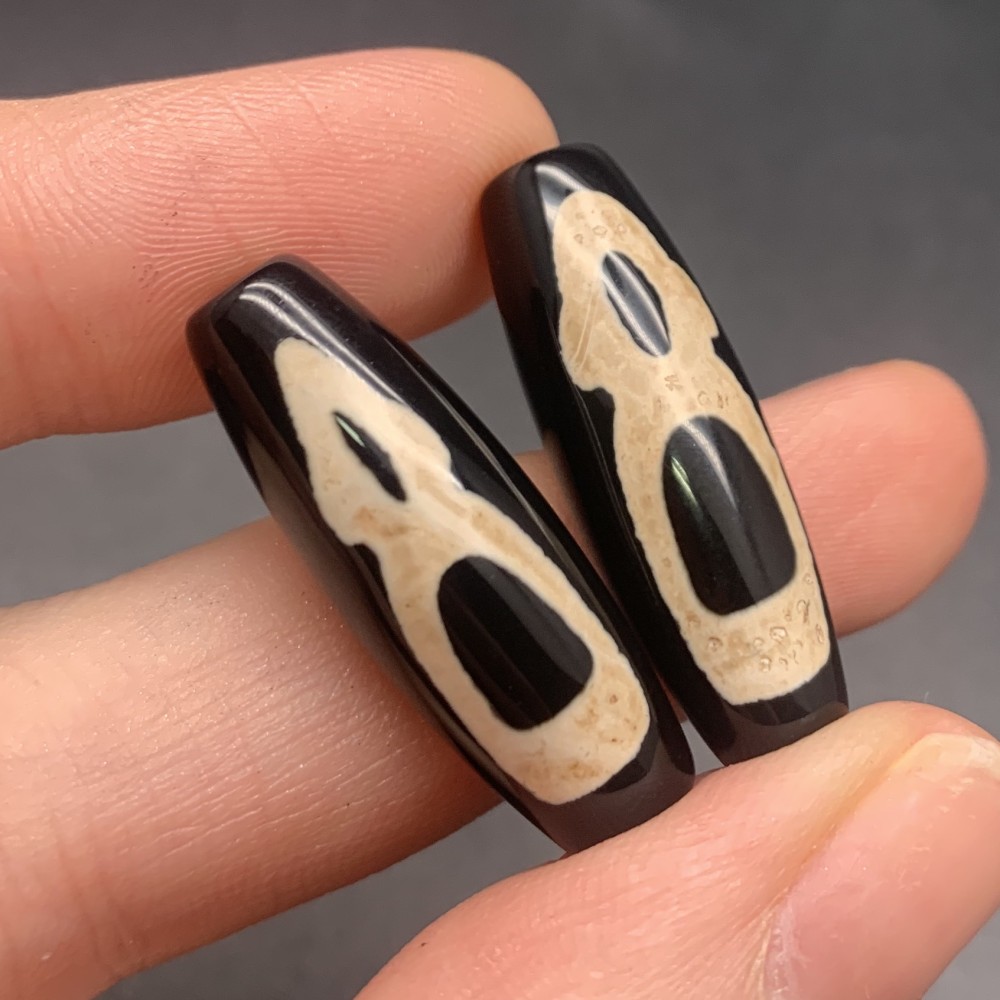 Бусина Дзи "16" из агата, Бог богатства, Кубера, размер 30х10 мм, цена за 1 шт