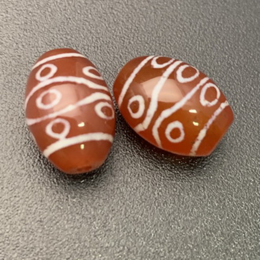 Бусина Дзи "708" из сердолика, 10 глаз, размер 12х9 мм